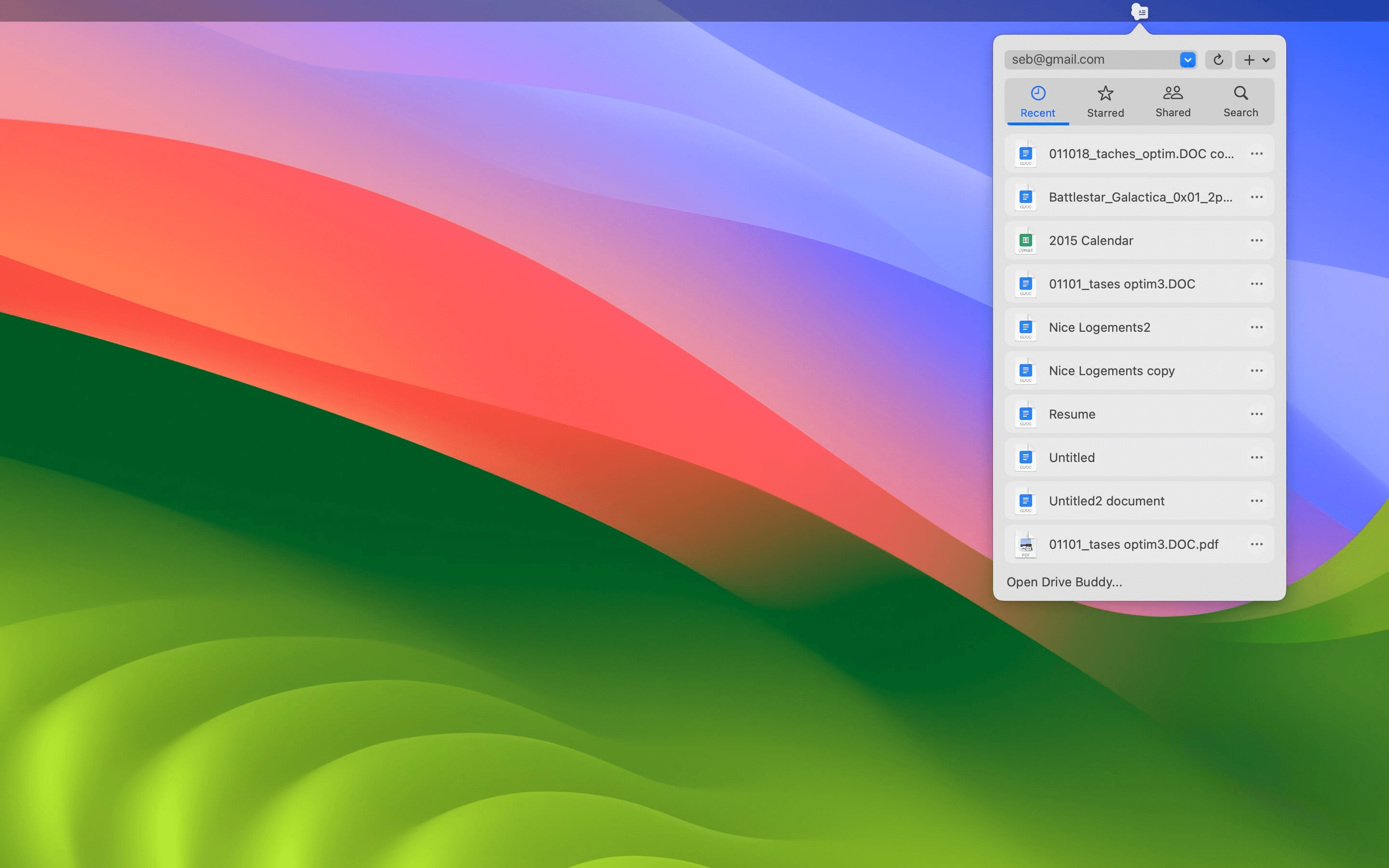 Important files are often starred or shared. Menu bar entry helps you get to those items quickly when you need the fastest path to commonly used documents.